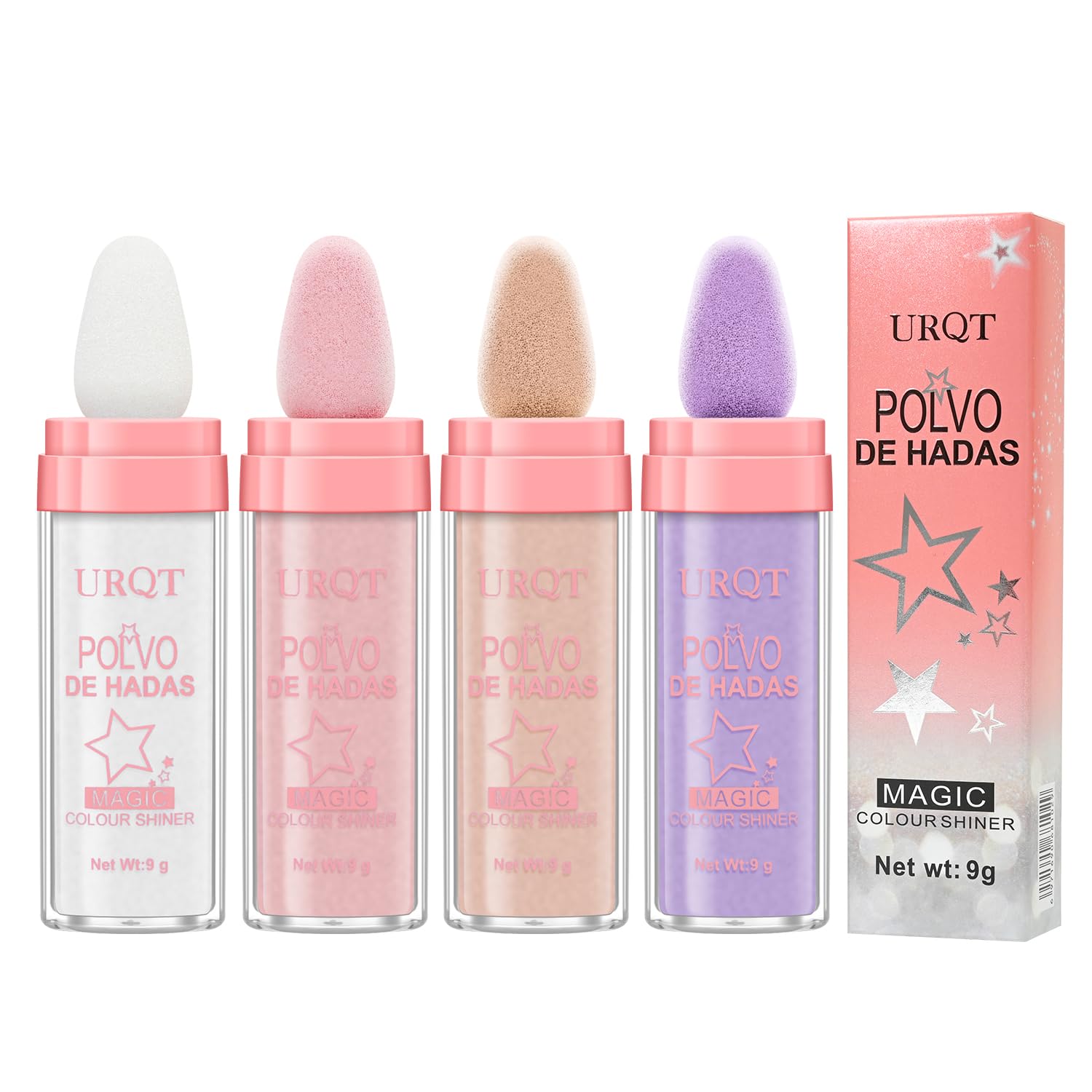 URQT 4 Color Polvo De Hadas Fairy Dust Highlight Patting Powder - Full Body Contouring and Clavicle Pearlescent Patting Powder for Face and Eye, Halloween Sparkling Body Glitter Powder (4 Pack)