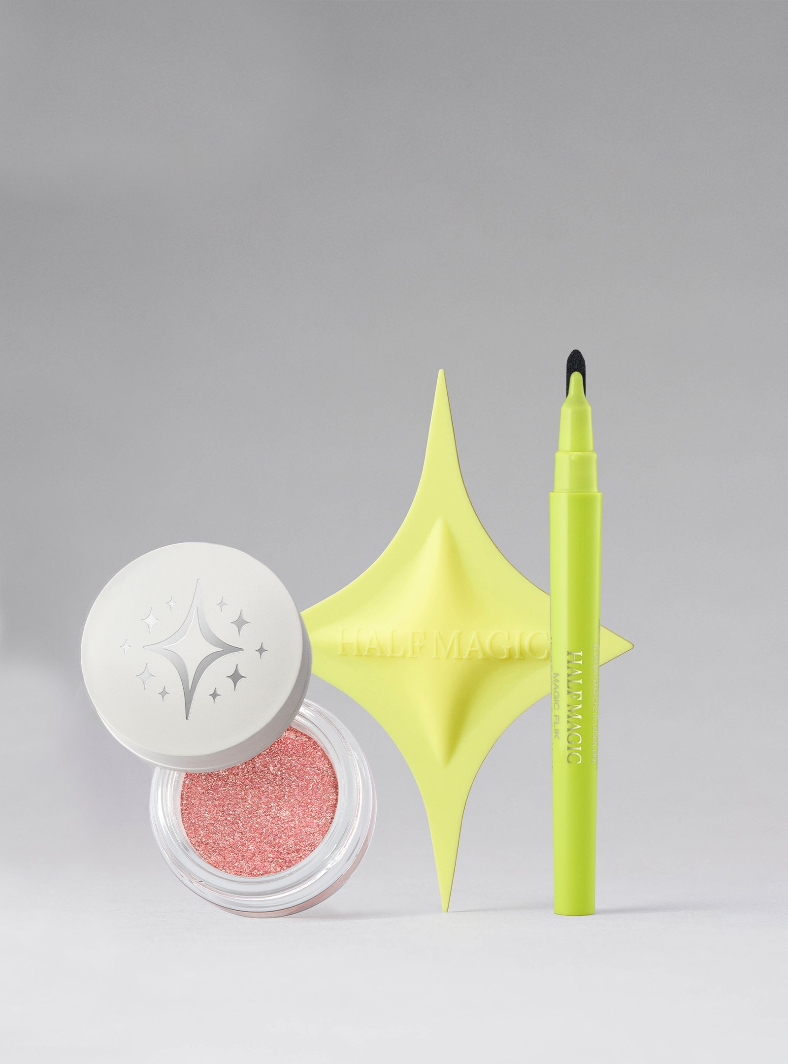 The internet “it” girlies have spoken. Get all of HALF MAGIC’s viral bestsellers in one magical bundle, for a one-way ticket to your most head-turning eye looks. Whether you’re dusting your lids with GLITTERPUCK’S insanely reflective sparkle or drawing razor-sharp wings with MAGIC FLIK liner and WING MAGICIAN, the ultimate wing guide – these TikTok darlings give you everything you need to create effortless eye magic.